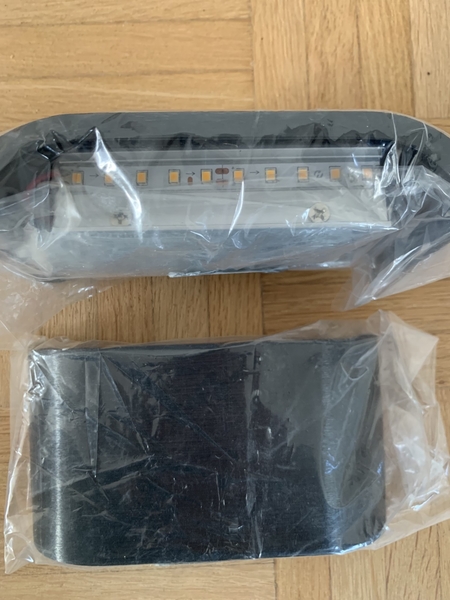 2 stuks ‘Moderne LED Wall Lampen’• Prijs is voor de 2 stuks. • Binnenhuis moderne wandlampen van aluminium met geborsteld zwarte kleur. • Is rest van verbouwing, dus nog nieuw & nooit aangesloten geweest of gebruikt. • LED-driver, aansluitingen, schroeven & monteerstukken allen aanwezig in verpakking (zie foto’s) • Gewone aansluiting & Ingangsspanning. • Geeft zacht warm sfeervol licht van 10W. • Levensduur meer dan 30.000 uren. • (GEEN waterdicht, dus best niet voor buiten gebruiken.)